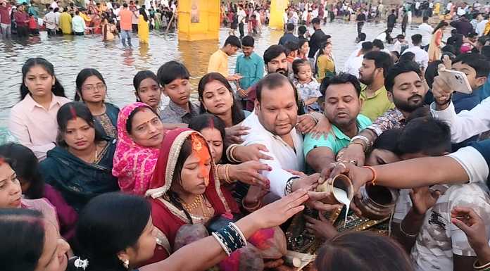 चैती छठ पर व्रतियों ने दिया संध्या अर्घ्य, नलकारी घाट पर उमड़े श्रद्धालु
