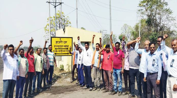 बलकुदरा खुली खदान में काला बिल्ला लगाकर चार लेबर कोड का किया विरोध