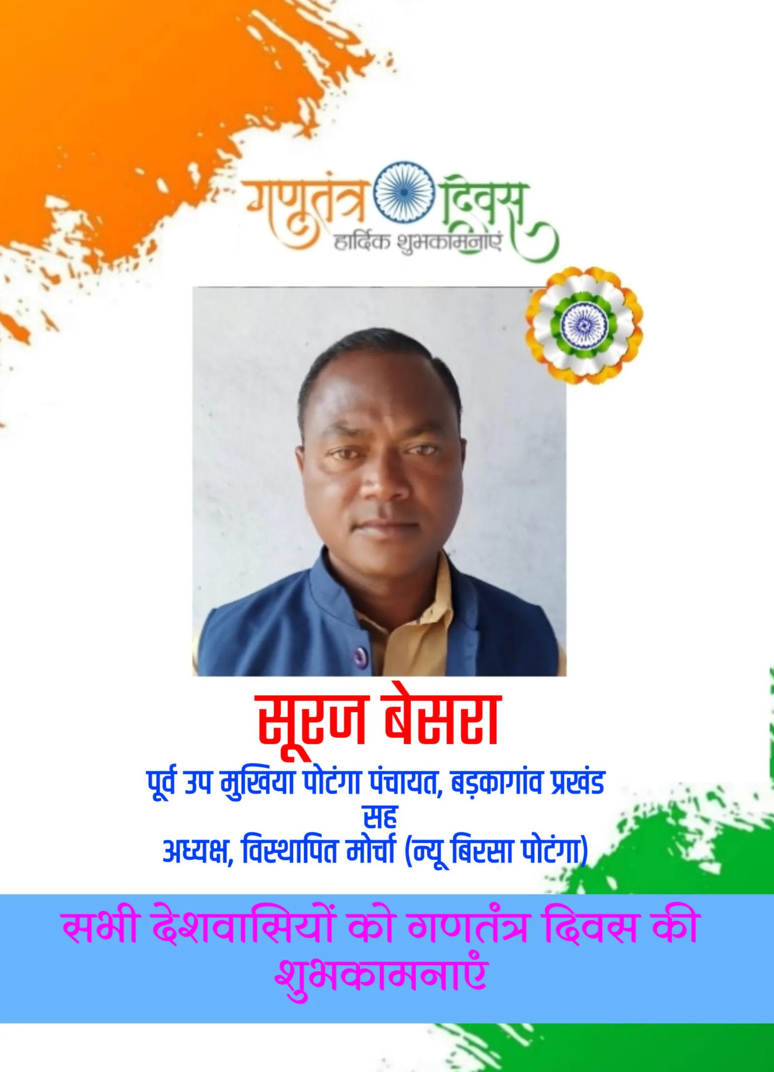 आज के इस राष्ट्रीय पर्व के अवसर पर आईये हम सब पुनः संकल्प लें कि संविधान की मूल भावना को केन्द्र में रखते हुए राष्ट्र निर्माण में अपना योगदान दें। महान स्वतंत्रता सेनानियों व राष्ट्र निर्माताओं को आज के अवसर पर हम सभी श्रद्धापूर्वक नमन कर स्मरण करते हैं। आगामी रामगढ़ विधानसभा उपचुनाव 2023 के मद्देनजर कार्यक्रम के दौरान उपायुक्त ने उपस्थित सभी लोगों से उपचुनाव के दौरान अपने मताधिकार का प्रयोग करने की अपील की।