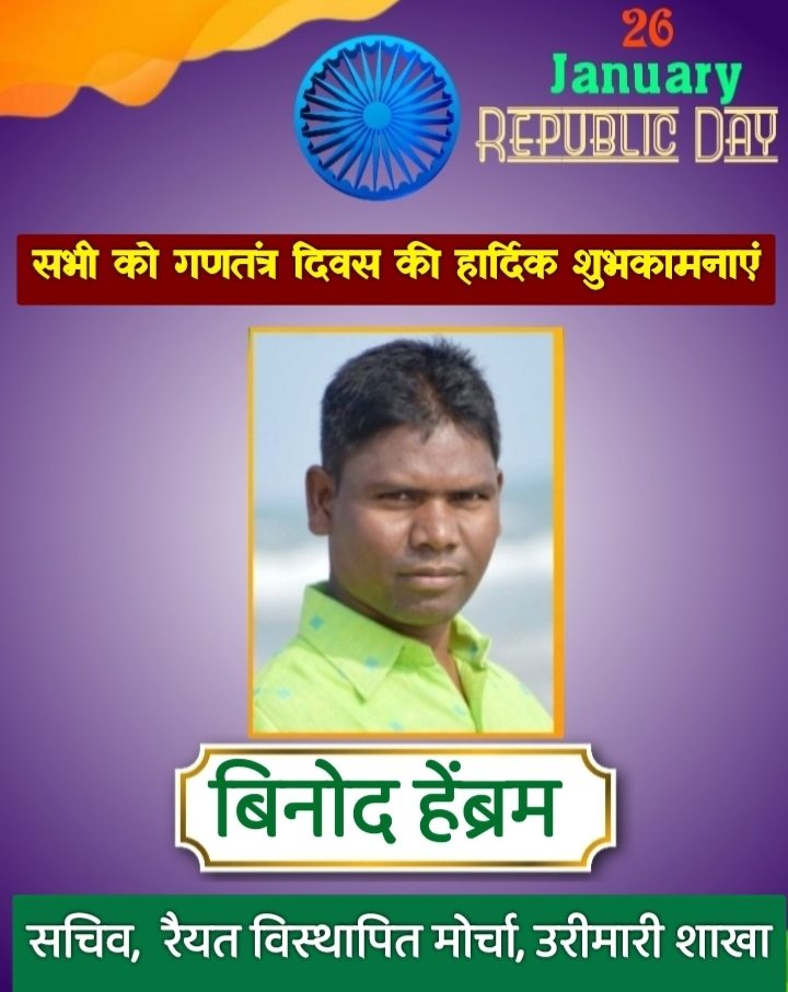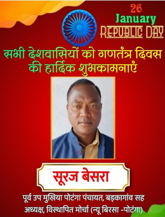बड़कागांव: विस्थापित कार्यालय न्यू बिरसा पोटंगा में गणतंत्र दिवस धूमधाम से मनाया गया। सर्वप्रथम विस्थापित समिति न्यू बिरसा पोटंगा के अध्यक्ष सूरज बेसरा ने झंडोतोलन कर तिरंगे को सलामी दिया।