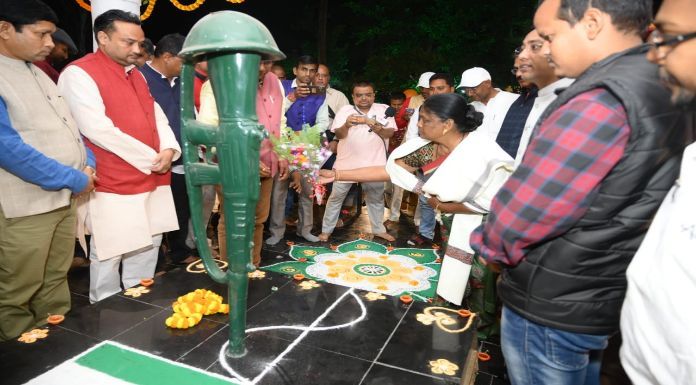 हजारीबाग: दीपावली के पूर्व बुधवार की शाम स्थानीय परिसदन के निकट  शहीद स्मारक स्थल में लगातर सातवें वर्ष  हर्षोल्लास के साथ “आपका एक दिया शहीदों के नाम” कार्यक्रम आयोजित किया गया। शाम ढलने के साथ ही 3001 दीयों कि दीपमालाओं से स्मारक को रौशन कर शहीदों को याद किया गया।
