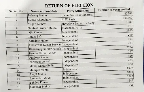 कांग्रेस प्रत्याशी बंजरंग महतो 93, 699 वोट लाकर हारे