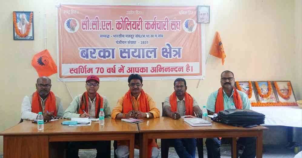 रामगढ़: भारतीय मजदूर संघ से सम्बद्ध सीसीएल कोलियरी कर्मचारी संघ के बरका सयाल क्षेत्रीय कमेटी का पुनर्गठन बुधवार को हुआ। इसे लेकर रिवर साइड स्थित क्षेत्रीय कार्यालय में बैठक आयोजित की गई। जिसकी शुरुआत भारत माता, भगवान विश्वकर्मा और भारतीय मजदूर संघ के संस्थापक दत्तोपंत ठेंगड़ी के चित्र पर माल्यार्पण कर किया गया। इसके उपरांत अमर शहीद गेनू सैद के बलिदान दिवस पर उन्हें याद करते हुए श्रद्धांजलि दी गई। बैठक की अध्यक्षता क्षेत्रीय अध्यक्ष हरिनाथ महतो और संचालन सचिव शंभू प्रसाद सिंह ने किया। बैठक में संघ के महामंत्री शशिभूषण सिंह और प्रदेश अध्यक्ष भवन निर्माण बृजकिशोर पासवान उपस्थित रहे। नई कमेटी का चुनाव संगठन मंत्री रामेश्वर मंडल और क्षेत्रीय प्रभारी शुभाशीष चटर्जी की देखरेख में हुआ।