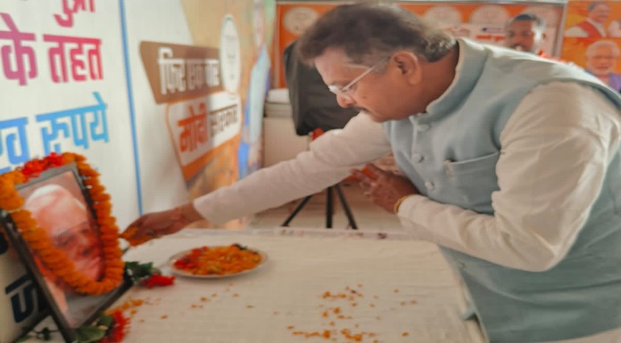 हजारीबाग: भारतीय जनता पार्टी के वरीय नेता, उत्कृष्ट कवि और देश के पूर्व प्रधानमंत्री भारत रत्न अटल बिहारी वाजपेयी की 101वीं जयंती हज़ारीबाग के सांसद सेवा कार्यालय सभागार में श्रद्धापूर्वक मनाई गई। अवसर पर सर्वप्रथम सांसद मनीष जायसवाल ने वाजपेयी जी की तस्वीर पर पुष्प अर्पित कर उन्हें भावभीनी श्रद्धांजलि दी। वहीं पार्टी कार्यकर्ताओं और गणमान्य लोगों ने श्रद्धा सुमन अर्पित कर नमन किया।