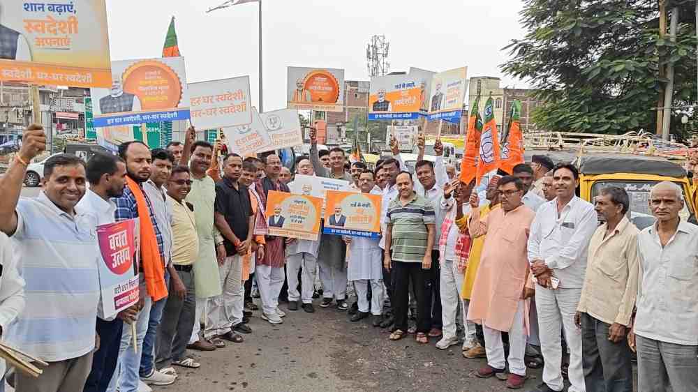 इस दौरान सांसद मनीष जायसवाल और विधायक मनोज कुमार यादव सहित सभी कार्यकर्ताओं के हाथों में “हर घर स्वदेशी, घर घर स्वदेशी, घटी जीएसटी मिला उपहार- धन्यवाद मोदी सरकार” जैसे अन्य स्लोगन लिखी तख्तियाँ थीं जो आत्मनिर्भर भारत के प्रति उनके संकल्प को दर्शा रही थीं। नेतद्वय सहित भाजपा कार्यकर्ताओं ने लोगों को गुलाब फूल भेंटकर स्वदेशी वस्तुओं को अपने जीवन में अपनाने का किया भावपूर्ण अपील भी किया ।