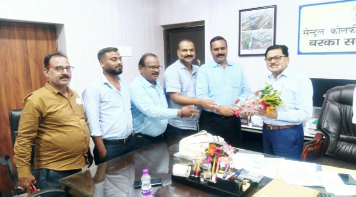 रामगढ़: भारतीय मजदूर संघ से संबद्ध सीसीएल कोलियरी कर्मचारी संघ बरका-सयाल प्रक्षेत्र के प्रतिनिधिमंडल ने मंगलवार को महाप्रबंधक अजय सिंह से मुलाकात की। जिसमें बीते दिनों मुंबई में केंद्रीय कोयला मंत्री जी. किशन रेड्डी द्वारा सम्मानित किए जाने पर महाप्रबंधक को पुष्प गुच्छ देकर बधाई और शुभकामनाएं दी। साथ ही बिरसा परियोजना को फाइव स्टार रेटिंग मिलने पर हर्ष जताया गया।