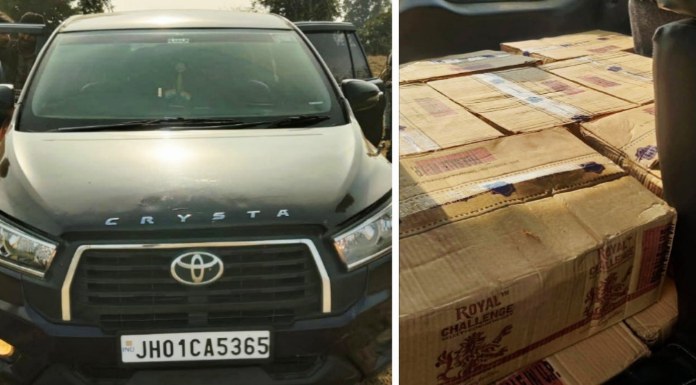 मिली जानकारी के अनुसार चंदवा पुलिस इंस्पेक्टर रणधीर कुमार को गुप्त सूचना मिली थी कि इनोवा क्रिस्टा वाहन के माध्यम से अवैध शराब की पेटियां झारखंड से बिहार ले जाई जा रही हैं। सूचना के आधार पर पुलिस ने चेकिंग अभियान चलाया। इस क्रम में इनोवा क्रिस्टा कार (JH01CA-5365) को रोका गया। तलाशी के क्रम में कार से रॉयल चैलेज और 8पीएम ब्रांड की 30 पेटियां बरामद की गई। जिसपर पुलिस ने कार को जब्त कर लिया।