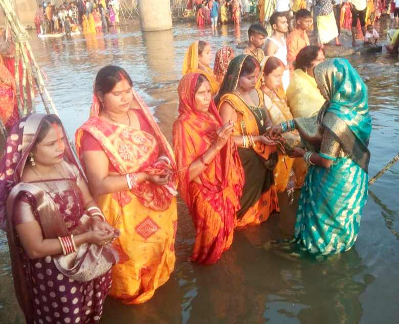 रामगढ़: लोक आस्था के चार दिवसीय छठ महापर्व पर छठ व्रतियों ने अस्ताचलगामी सूर्यदेव को अर्घ्य दिया। भुरकुंडा-सौंदा ‘डी’ मुख्य मार्ग स्थित नलकारी नदी घाट पर छठ व्रतियों की भारी भीड़ उमड़ी। दउरा में फल-फूल और पूजन सामग्री के साथ छठव्रति छठ घाट पर पहुंचे। नलकारी नदी में व्रतियों ने अस्ताचलगामी सूर्यदेव का ध्यान कर सांध्य अर्घ्य दिया।