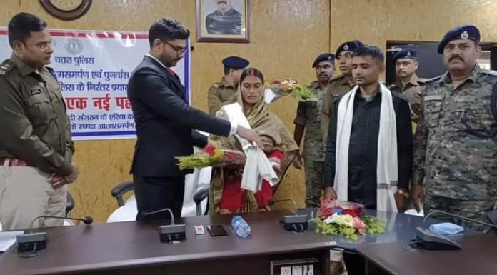 चतरा: जिला के प्रतापपुर, कुंदा क्षेत्र में सक्रिय प्रतिबंधित उग्रवादी भाकपा माओवादी नक्सली सगंठन का सदस्य सह एरिया कमांडर कमलेश यादव ने झारखंड सरकार के आत्मसमर्पण एवं पुनर्वास नीति “नई दिशा” से प्रभावित होकर जिला प्रशासन चतरा के समक्ष समाहरणालय सभाकक्ष में आत्मसमर्पण किया।पुनर्वास नीति के तहत मौके पर उन्हें एक लाख रुपया का चेक प्रदान किया गया।