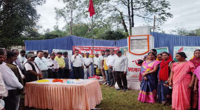 रामगढ़: भाकपा-माले पतरातु प्रखंड कमेटी ने गुरुवार को घुटूवा में शहीद स्मारक के समक्ष शहादत दिवस सभा का आयोजन किया। जिसमें वर्ष 1988 में संघर्ष के दौरान पुलिस फायरिंग में शहीद रिझनी देवी, बलकहिया देवी और राम प्रसाद महतो को याद किया गया। सभा का संचालन देवानंद गोप ने किया। कार्यक्रम में सर्वप्रथम भाकपा-माले जिला सचिव हीरा गोप ने झंडोत्तोलन किया। इसके उपरांत शहीद स्मारक पर माल्यार्पण और पुष्पांजलि अर्पित की गई। इस दौरान शहीदों की याद में दो मिनट का मौन रख उन्हें श्रद्धांजलि दी गई। वहीं सभा को संबोधित करते हुए वक्ताओं ने कहा कि वर्ष 1988 में महाजनी और सूदखोरी के दौर में प्रतिरोध संघर्ष के दौरान पुलिस के द्वारा गोलीबारी की गई। जिसमें रिझनी देवी, बलकहिया देवी और राम प्रसाद महतो की मौत हो गई। तब से हर साल शहीदों से प्रेरणा लेते हुए भाकपा-माले कार्यकर्ता संघर्ष के लिए हमेशा तैयार रहने का संकल्प लेते हैं।