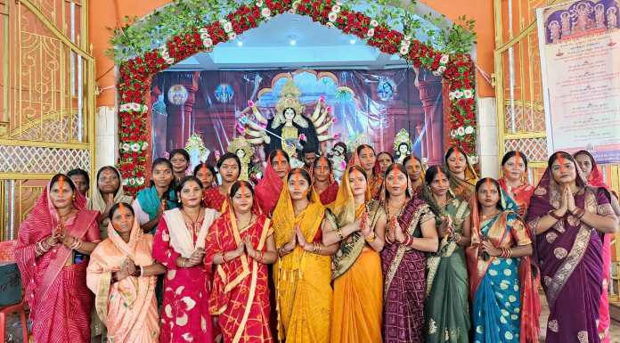रामगढ़: भुरकुंडा के बिरसा चौक पर दुर्गा मंडप का पट महासप्तमी पर विधिवत पूजा-अर्चना के साथ खुला। पट खुलते ही मां दुर्गा के दर्शन को श्रद्धालुओं की भीड़ उमड़ी। पुजारी अशोक मिश्रा के द्वारा वैदिक मंत्रोच्चार के बीच विधि-विधान से मां दुर्गा की पूजा की गई। पूजा के आयोजन में श्री श्री दुर्गा पूजा एवं काली समिति बिरसा चौक के अध्यक्ष प्रदीप मांझी, सचिव अजय साहू, कोषाध्यक्ष योगेश दांगी, उपाध्यक्ष शंभू साह, प्रेम कुमार साहू, बिहारी मांझी, अनिल दांगी, बबलू कुमार, शंकर मांझी, राजेंद्र मुंडा, योगेंद्र यादव, सह सचिव आकाश साहू, भीम राणा, महेश हेंब्रम, अजय कुमार कुशवाहा, कुलदीप प्रसाद, शंकर यादव, भोला चंद्रवंशी, संरक्षक टिकेश्वर महतो, शिवचरण महतो, परमेश्वर राम, शंकर विश्वकर्मा, प्रेम कुमार, सुनील सोनी, गिरधारी गोप, सहदेव प्रसाद, लख्खी राणा, डॉ. विश्वास, विजयंत कुमार, डॉ. बीसी मंडल, राजदेव मुंडा, पूजा संचालन समिति के रामदेव कुशवाहा, रंकज कुमार, नरेश रजक, प्रकाश सोनी, आनंद वर्मा समेत कई अन्य तन्मयता से लगे हुए हैं।