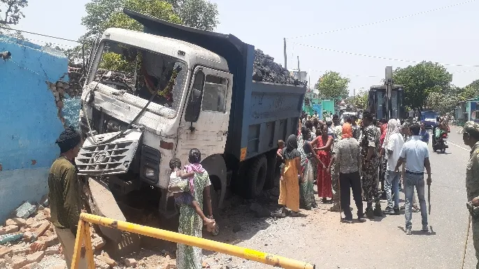 कोयला लदा हाइवा घर में घुसा, भारी नुकसान