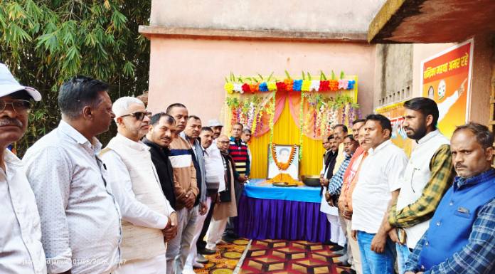 गिरिडीह/जमुआ: जमुआ के पूर्व विधायक स्वर्गीय चंद्रिका महथा की द्वितीय पुण्यतिथि उनके पैतृक आवास तपसीडीह में बुधवार को मनाई गई। लोगों नें उनके चित्र पर माल्यार्पण करते हुए उन्हे श्रद्धांजलि दी। पूर्व विधायक स्व. चंद्रिका महथा के सुपुत्र कांग्रेसी नेता अनिल चौधरी के नेतृत्व में तपसीडीह स्थित पंचायत भवन में श्रद्धांजलि कार्यक्रम का आयोजन किया गया। जिसमें कांग्रेस के जिलाध्यक्ष सतीश केडिया, पूर्व जिलाध्यक्ष धनंजय सिंह,भाजपा के पूर्व जिलाध्यक्ष विनय शर्मा, भाजपा के किसान मोर्चा के उपाध्यक्ष परमेश्वर यादव, मनोज कुमार राय, ओम प्रकाश महतो, रोजन अंसारी, राजद के ललन यादव, भाकपा माले के कैलाश यादव, अशोक महत्ता, अयोध्या महथा, कपिलदेव राय सहित कई लोग शामिल हुए। इसके अलावा अन्य सामाजिक कार्यकर्ताओ और गणमान्य लोगों ने उनके चित्र पर पुष्प अर्पित कर उन्हें श्रद्धांजलि दी।