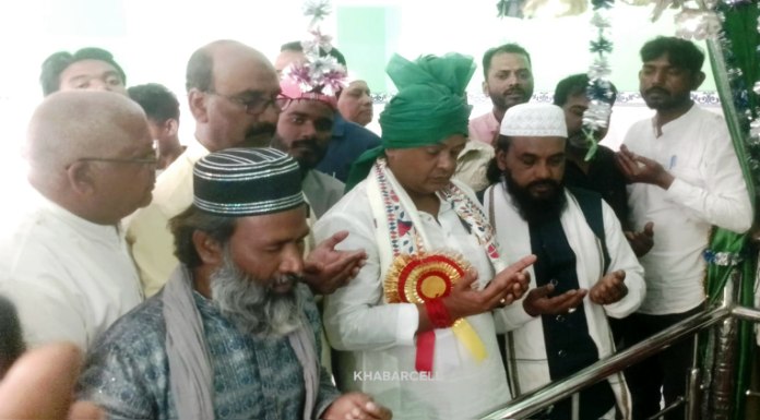 रामगढ़: सूबे के स्वास्थ्य मंत्री डॉ. इरफान अंसारी रविवार को बरकाकाना क्षेत्र के दुर्गी पहुंचे। जहां उन्होंने सालाना उर्स के मौके पर हज़रत हेदायतुल्लाह शाह रहमतुल्लाह अलैह के मजार पर चादरपोशी कर अमन-चैन और खुशहाली की दुआ मांगी। इससे पूर्व डॉ. इरफान अंसारी अंसाराबाद, दुर्गी स्थित मदरसा पहुंचे। जहां स्थानीय लोगों ने उनका गर्मजोशी से स्वागत किया गया। इस दौरान स्थानीय मुखिया मोकीम आलम ने उन्हें ज्ञापन सौंपा। जिसके माध्यम से मदरसा अहल-ए-सुन्नत नुरूल इस्लाम में छात्रों और मिल्लत अकादमी में छात्राओं के लिए 100-100 बेड के छात्रावास और ईदगाह परिसर में पेवर ब्लॉक लगवाने की मांग रखी गई। यहां से मंत्री इरफान अंसारी मजार पहुंचे। जहां उन्होंने अकीदतमंदों के साथ चादरपोशी की और दुआ मांगी। इस दौरान बड़ी संख्या में लोग मौजूद थे।