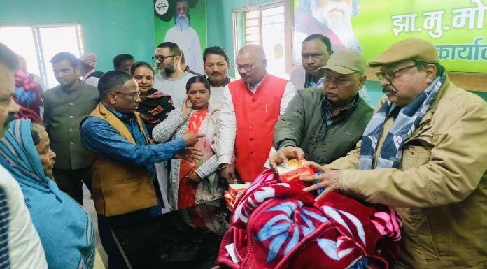 गिरिडीह: झारखंड मुक्ति मोर्चा के संस्थापक दिशोम गुरू शीबू सोरेन की 83 वीं जयंती पर रविवार को झामुमो कार्यालय गिरिडीह में गरीबों के बीच कंबल और भोजन का वितरण किया गया। अवसर पर सर्वप्रथम झामुमो नेताओं ने गुरूजी की तस्वीर पर माल्यार्पण किया और उनके बताए मार्ग पर चलने का संकल्प लिया। समारोह में गिरिडीह जिला के विभिन्न प्रखंडों से आए कार्यकर्ताओं को सम्बोधित करते हुए राज्यसभा सांसद डॉ. सरफराज अहमद ने कहा कि दिशोम गुरू शीबू सोरेन आजीवन अन्याय के खिलाफ लड़ते रहे। गुरूजी के पिताजी भी महाजनों के खिलाफ लड़े और शहीद हुए।