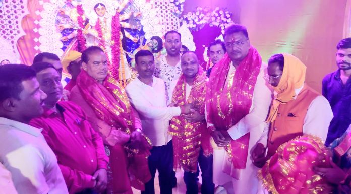 इससे पूर्व अतिथियों के आगमन पर पूजा समिति द्वारा माता की चुनरी देकर उनका स्वागत और अभिनंदन किया गया। मौके पर पूजा समिति के पदाधिकारी और सदस्य सहित कई गणमान्य लोग मौजूद थे।