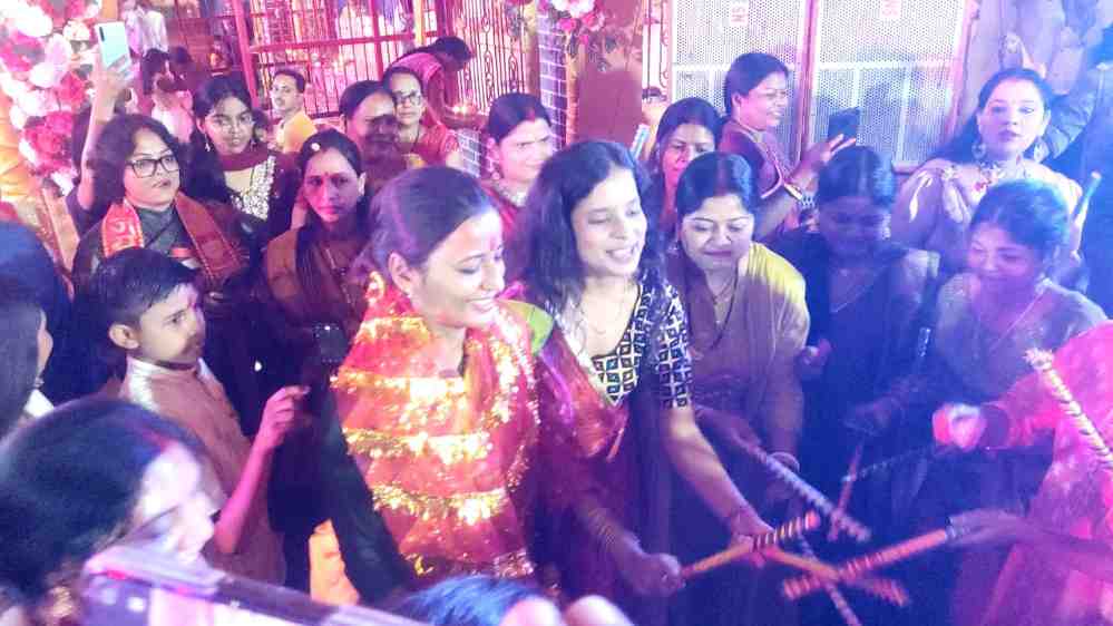• पूर्व विधायक अंबा प्रसाद ने भी लिया आशीर्वाद, श्रद्धालुओं संग डांडिया में झूमीं • सीसीएल बरका-सयाल प्रक्षेत्र के महाप्रबंधक सपरिवार आरती में हुए शामिल