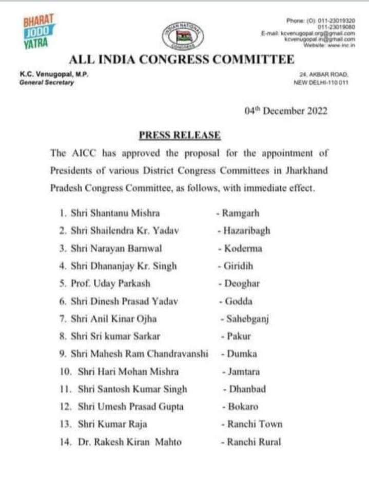 Not a single district president of Congress is a minority in JharkhandNot a single district president of Congress is a minority in Jharkhand