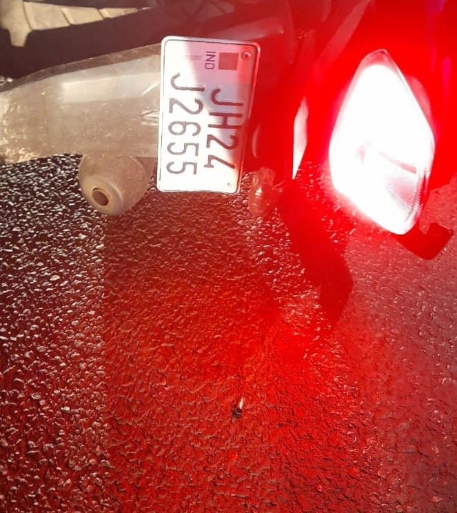 घटनास्थल पर बाइक और गिरा हुआ खोखा