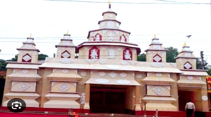 रामगढ़: बरकाकाना क्षेत्र के गांधी मैदान में दक्षिणेश्वरी काली मंदिर के तर्ज पर दुर्गा पूजा का पंडाल बनाया जा रहा है। जिसकी ऊंचाई 70 फीट और चौड़ाई 60 फीट होगी। पूजा पंडाल की कुल लागत तीन लाख रुपए है। जबकि एक लाख रुपये की लागत से विद्युत सज्जा और 95 हजार रूपये की लगात से 15 फीट की प्रतिमा का निर्माण कराया जा रहा है। पश्चिम बंगाल से पहुंचे कारीगर पंडाल को तैयार करने में जुटे हुए हैं।