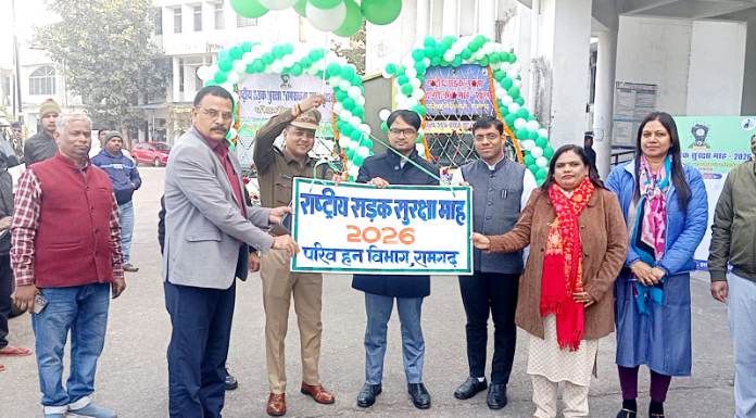 रामगढ़: राष्ट्रीय सड़क सुरक्षा माह 2026 के अवसर पर “सीख से सुरक्षा, तकनीक से परिवर्तन” थीम के साथ 01 जनवरी से 31 जनवरी तक जिले में विभिन्न जागरूकता कार्यक्रमों का आयोजन किया जा रहा है। इस क्रम में सोमवार को समाहरणालय परिसर में उपायुक्त फैज अक अहमद मुमताज की अध्यक्षता में सड़क सुरक्षा से संबंधित विभिन्न कार्यक्रमों का आयोजन किया गया। अवसर पर उपायुक्त ने पुलिस अधीक्षक अजय कुमार के साथ संयुक्त रूप से सड़क सुरक्षा जागरूकता वाहनों को हरी झंडी दिखाकर रवाना किया। ये वाहन जिले के विभिन्न प्रखंडों एवं ग्रामीण क्षेत्रों में भ्रमण कर आमजनों को यातायात नियमों एवं सड़क सुरक्षा के प्रति जागरूक करेंगे।