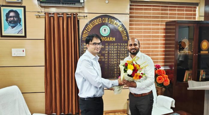 रामगढ़: जिला के नये दंडाधिकारी सह उपायुक्त ऋतुराज ने शनिवार को विधिवत पदभार ग्रहण किया। रामगढ़ उपायुक्त कार्यालय पहुंचने पर निवर्तमान उपायुक्त फैज अक अहमद मुमताज ने गर्मजोशी से उनका स्वागत किया। दोनों ने बुके देकर एक दूसरे का अभिवादन किया। इसके उपरांत निवर्तमान उपायुक्त ने नये उपायुक्त ऋतुराज को पदभार सौंपा।