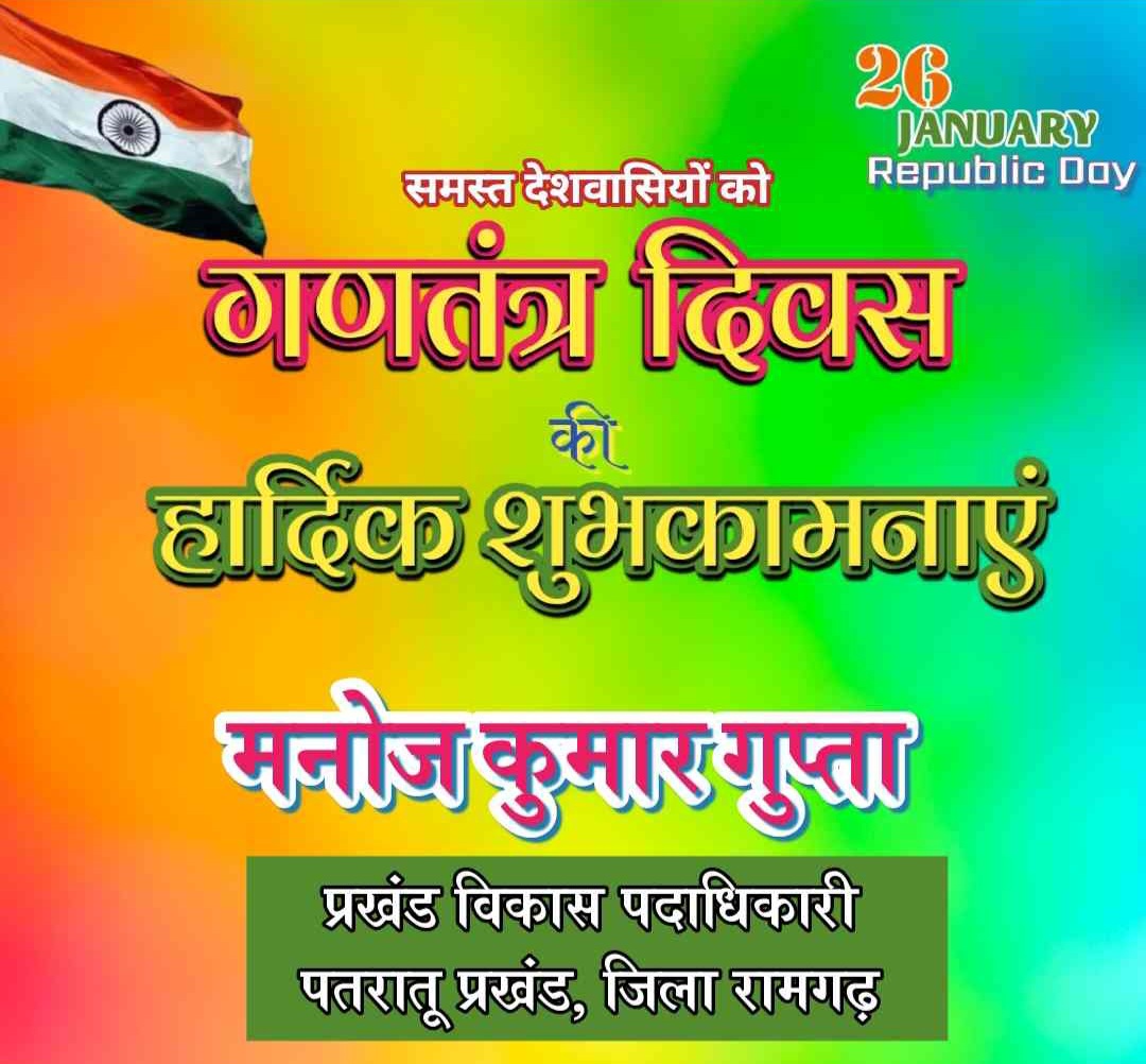 रामगढ़: पतरातू प्रखंड अंतर्गत सौंदा ‘डी’ पंचायत में 77वां गणतंत्र दिवस सोमवार को उत्साहपूर्वक मनाया गया। सौंदा ‘डी’ पंचायत भवन के प्रांगण में पंचायत के मुखिया उपेंद्र शर्मा ने झंडोत्तोलन किया गया। सभी ने तिरंगे को सलामी दी और एक स्वर में राष्ट्रगान गाया। कार्यक्रम के दौरान पंचायत समिति सदस्य कुमकुम देवी ने मुखिया को अंगवस्त्र द्वारा देकर उनका अभिनंदन किया। साथ ही उपस्थित लोगों के बीच मिठाई बांटी गई।