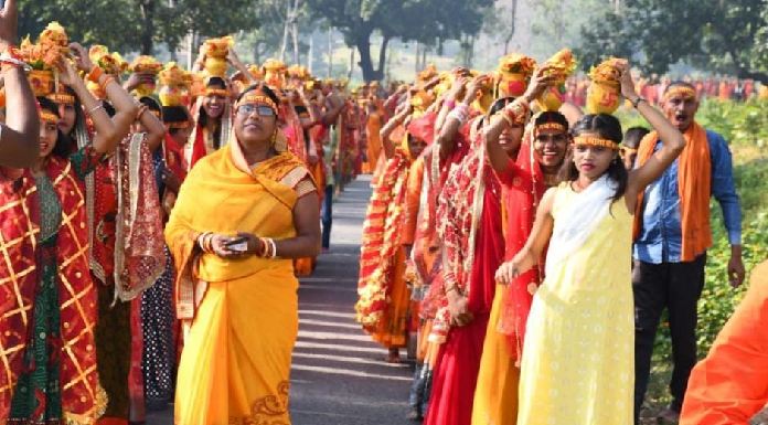 पहरा दुर्गा मंडप से घाघरा जल प्रपात तक निकली 501 कलशों की यात्रा