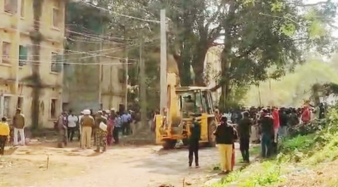 रामगढ़: झारखंड उच्च न्यायालय के आदेश का अनुपालन करते हुए जिला प्रशासन ने गुरुवार को पतरातू प्रखंड के हेसला में अतिक्रमण हटाने की कवायद शुरू की। जिसके तहत झारखंड औद्योगिक क्षेत्र विकास प्राधिकार को हस्तांतरित पीटीपीएस की जमीन से अतिक्रमण हटाने के लिए बड़ी संख्या में पुलिस बल के साथ प्रतिनियुक्त दंडाधिकारी जनता नगर पहुंचे। जहां पीटीपीएस के क्वार्टरों में रह रहे लोगों को क्वार्टर खाली करने का निर्देश दिया। साथ ही बुलडोजर के जरिए यहां व्यक्तिगत रूप से किए कई निजी निर्माण भी ध्वस्त कर दिए गए। इस दौरान स्थानीय लोगों की काफी भीड़ जमी रही और घंटों कौतूहल का माहौल बना रहा। अभियान के दौरान कई लोग क्वार्टर खाली कर परिवार समेत अन्यत्र जाते भी देखे गए। जबकि कई लोग अधिकारियों से मोहलत देने की गुजारिश भी करते दिखे। गए। प्रशासन द्वारा अचानक चलाए गए मुहीम से स्थानीय लोग काफी व्याकुल और बेहद चिंतित दिखे।