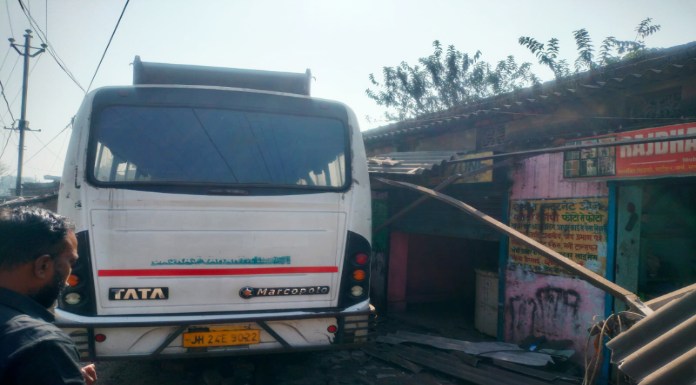 मिली जानकारी के अनुसार स्थानीय फैक्ट्री में कर्मचारियों के आवागमन में लगी शिफ्ट बस रोहित रथ (JH 24 E 9022) बीती रात तकरीबन 10:30 बजे रामगढ़ की ओर जा रहा थी। इस दौरान पोचरा फ्लाइओवर से पहले बस अनियंत्रित हो गई और सड़क किनारे दुकानों को क्षतिग्रस्त करते हुए रुक गई। गनीमत यह रही की रात होने के कारण यहां सन्नाटा पसरा हुआ था। जिससे बड़ी अनहोनी टल गई।