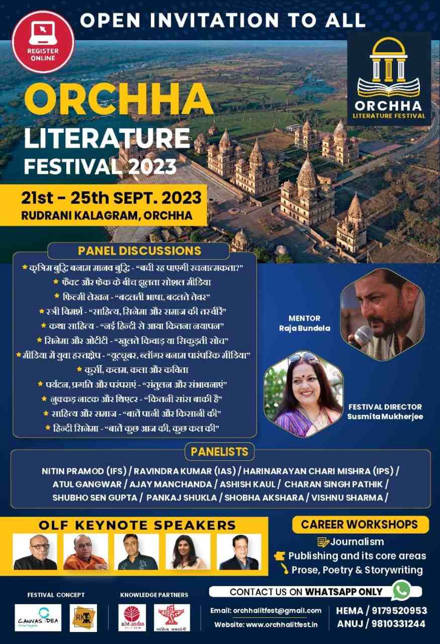 मध्य प्रदेश के ओरछा में 21 से 25 सितंबर तक लिटरेचर फेस्ट 2023 का होगा आयोजन