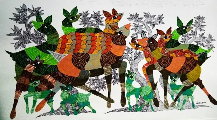 आज हम बात करेंगे ‘गोंड पेंटिंग’ की। आपको रूबरू करायेंगे भारत की हृदयस्थली मध्यप्रदेश की गोंड जनजाति की प्राचीन और पारंपरिक चित्रकला से। एकबारगी सामान्य सी दिखती गोंड आर्ट की पेंटिंग्स में जब आप झांकते हैं तो बस खोकर रह जाते हैं। अपने देश की प्राचीन और समृद्ध संस्कृति की झलक अद्भुत एहसास करा जाती है।